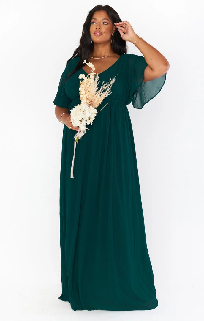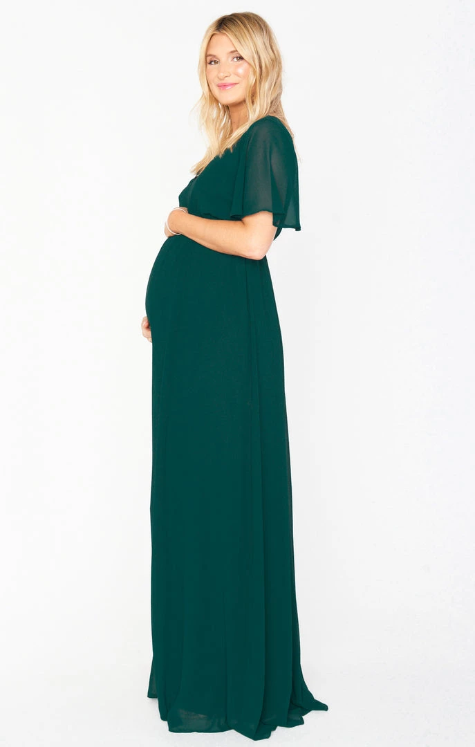 Show Me Your Mumu Maternity Emily Empire Maxi Dress ~ Emerald Chiffon