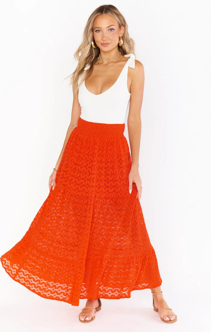 Show Me Your Mumu Melinda Maxi Skirt ~ Spacey Lacey Red
