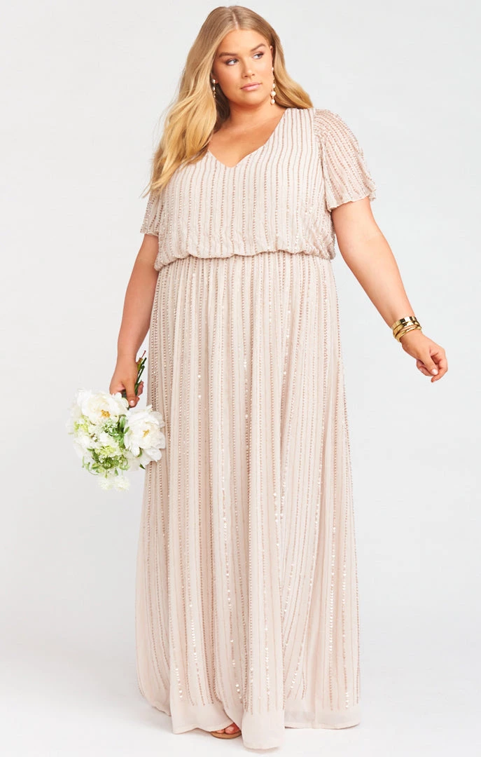 The Michelle Beaded Maxi is a timeless silhouette with an elastic waist and a flutter sleeve. She has a flattering V-neck and is bra friendly! Very similar shape to our best selling Kendall Maxi, but with a sleeve!