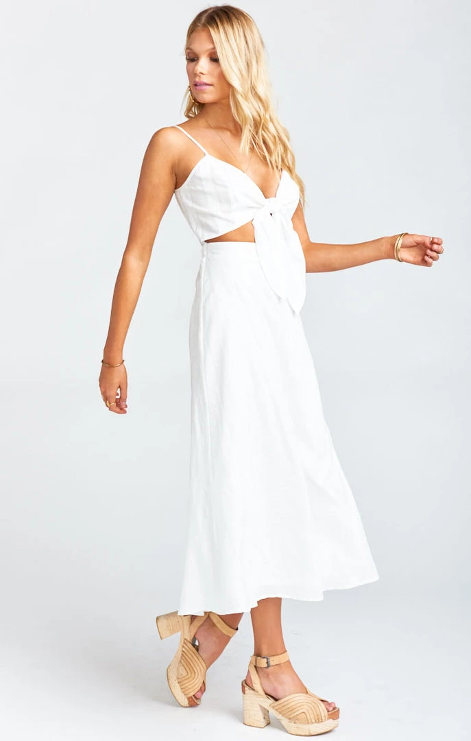 SKU: show-me-your-mumu-1711756771371 Categories: Clothes, Dresses, Dresses + Rompers, Maxi, Midi Tags: Child:White Tulip, Dresses, Parent:moby-tie-maxi, Solids, Spring, Summer, Vacation dresses, Whites