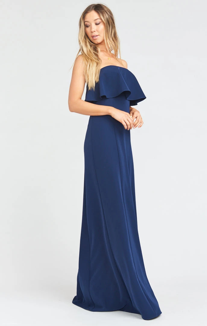 Show Me Your Mumu Monaco Ruffle Gown ~ Rich Navy Stretch Crepe