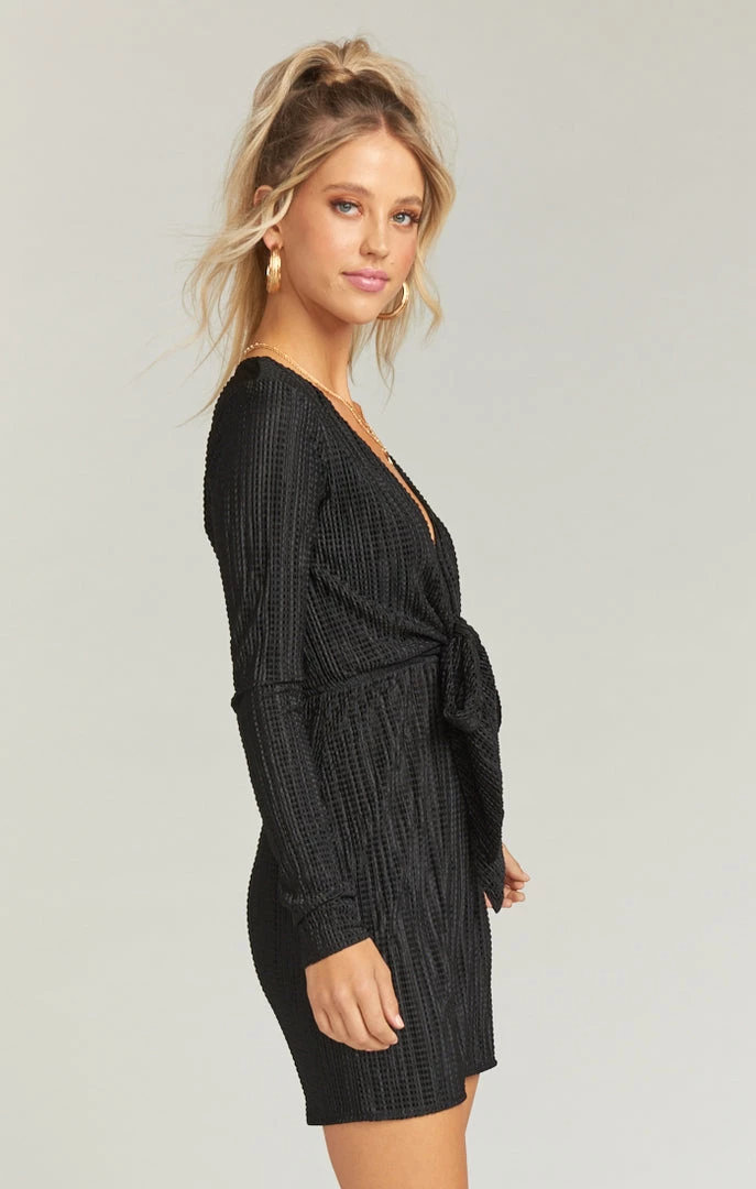 The Perfect party dress. This dress features a tie front closure and a deep v-cut neck. Pair this fun and sassy party dress with your fave booties or chunky heel and a clutch, you’ll be sure to catch the eye of everyone at the party!
