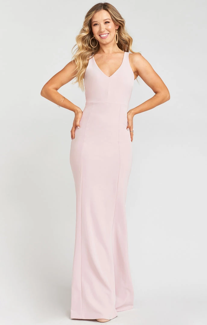 SKU: show-me-your-mumu-1789476569131 Categories: Bridesmaids, Bridesmaids Dresses, Clothes, Dresses, Dresses + Rompers Tags: Child:Vintage Rose Stretch Crepe, Division:bridal, Entity_id:52820, Length:maxi, Neckline:v neck, Parent:morgan-gown, Style:a line, Style:fitted