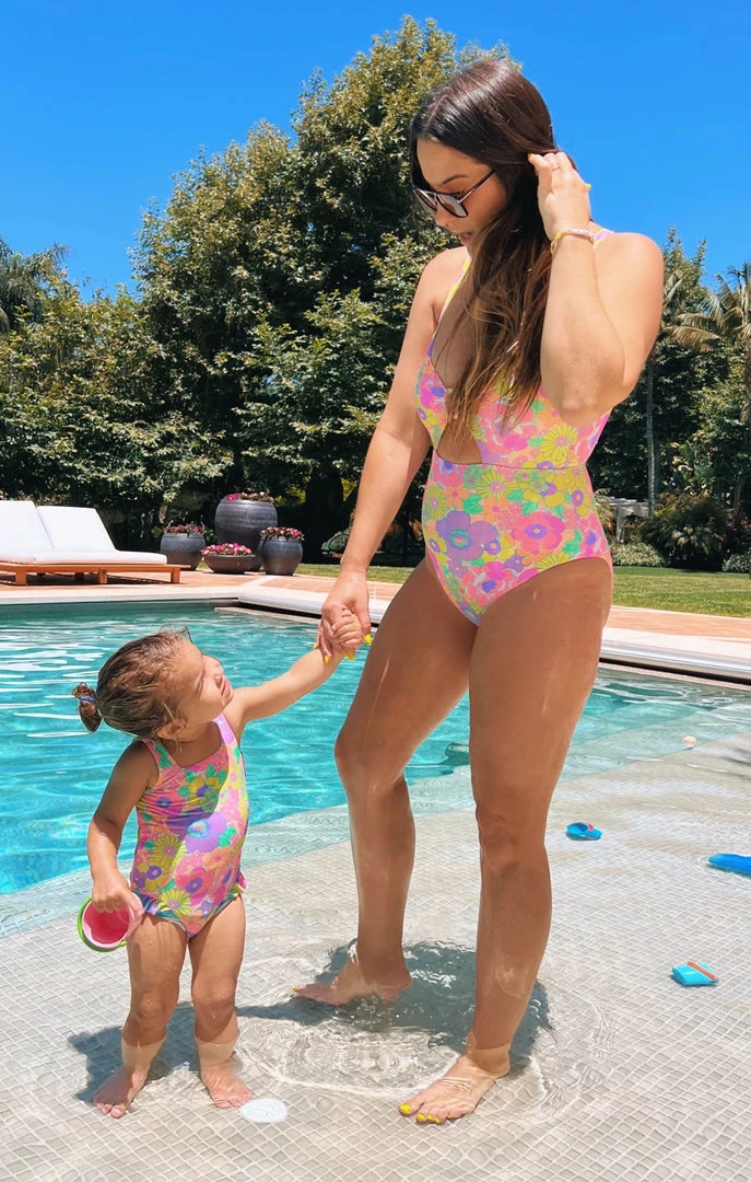 The cutest ruffled one piece for your little mini me! Match perfectly with your baby in this neon floral swimmie.