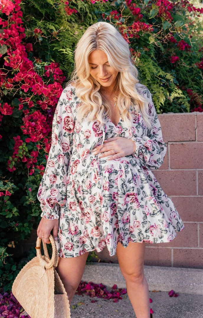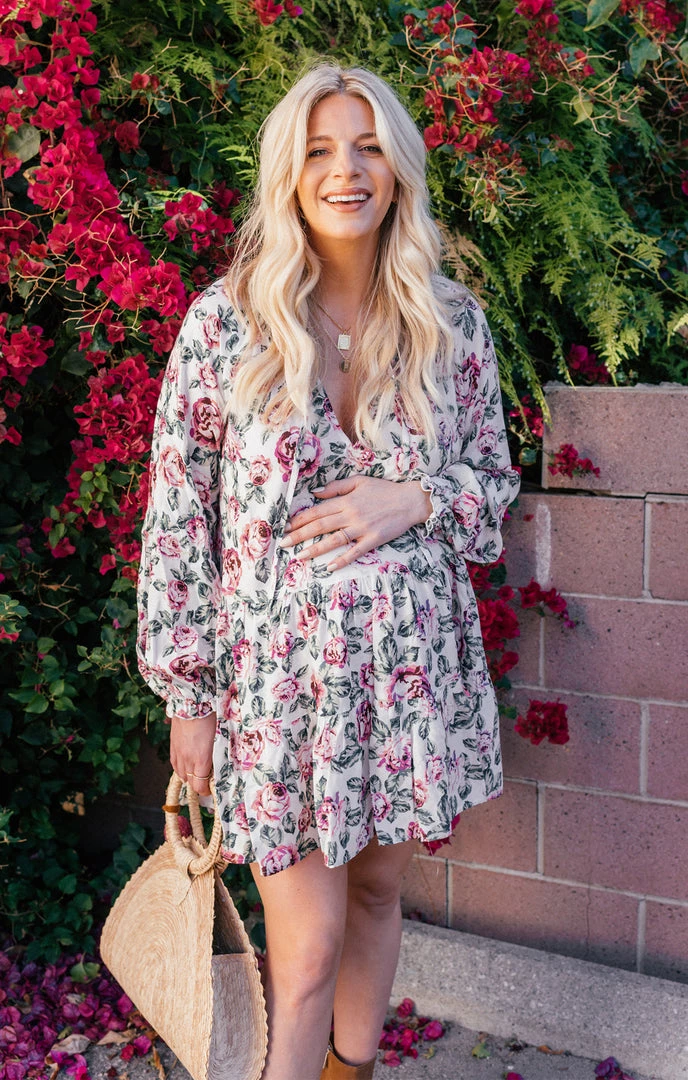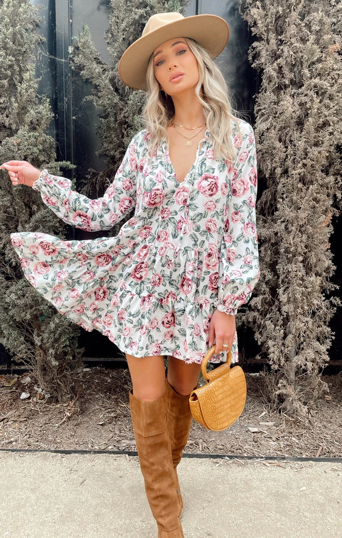 A little Birdie told me that this is the new go-to floral tiered mini! High on the shoulders with an open v-neck with ties give this a super relaxed vibe while still looking chic. Easily thrown on for a day of errands or can be dressed up for a nice shower or brunch!