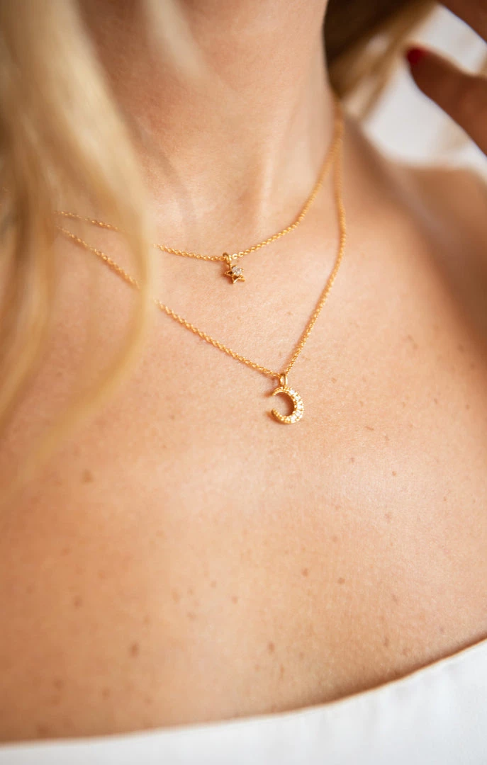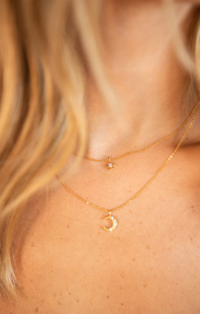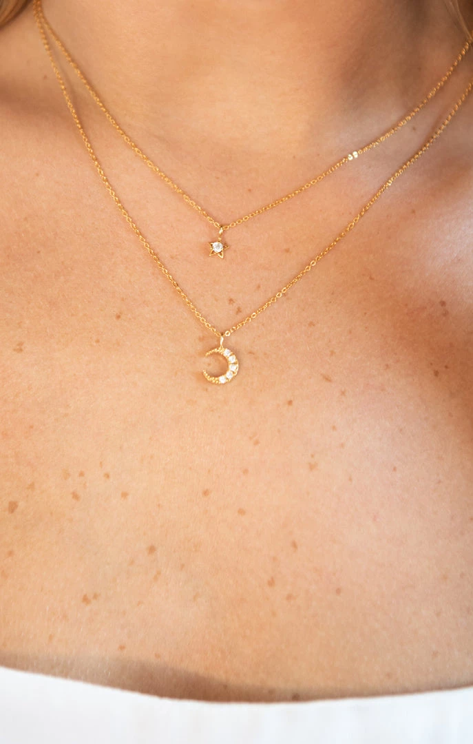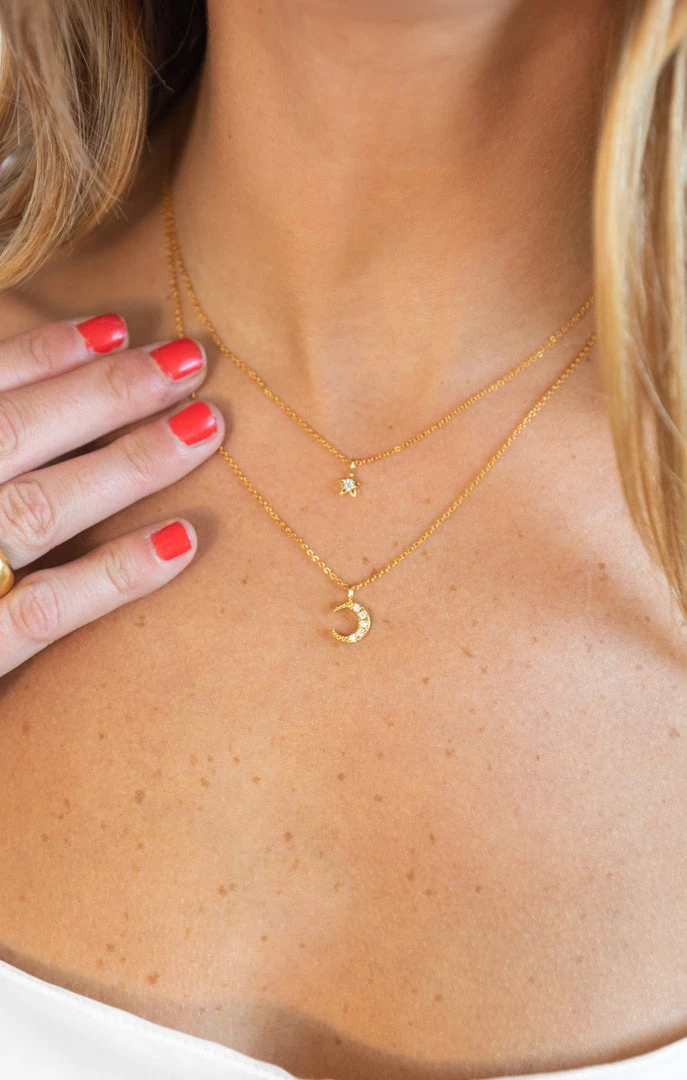 A Dainty Layered Night Sky Necklace Shimmering With Delicate Moon and Star Charms. The Moon and the Stars are a Light in the Darkness, Balancing the Night Sky.