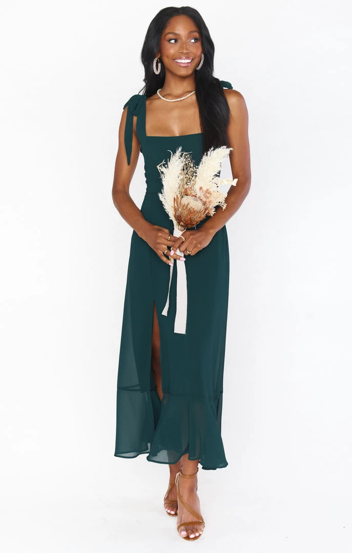 Show Me Your Mumu New Mu Claire Midi Dress ~ Emerald Chiffon