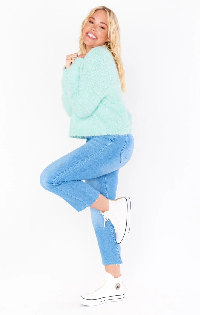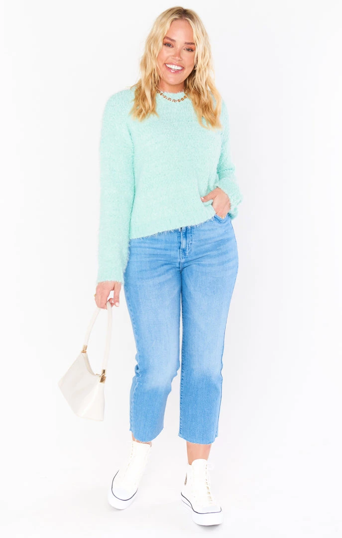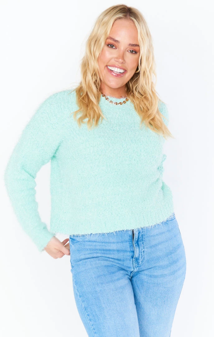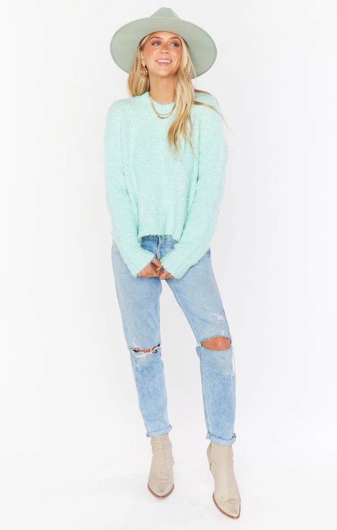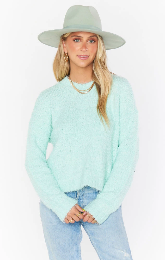 The coziest sweater you’ve ever worn! This sweater features a soft mint green knubby knit and a scoop neck. You’ll want to cuddle up all year long in this new sweater!