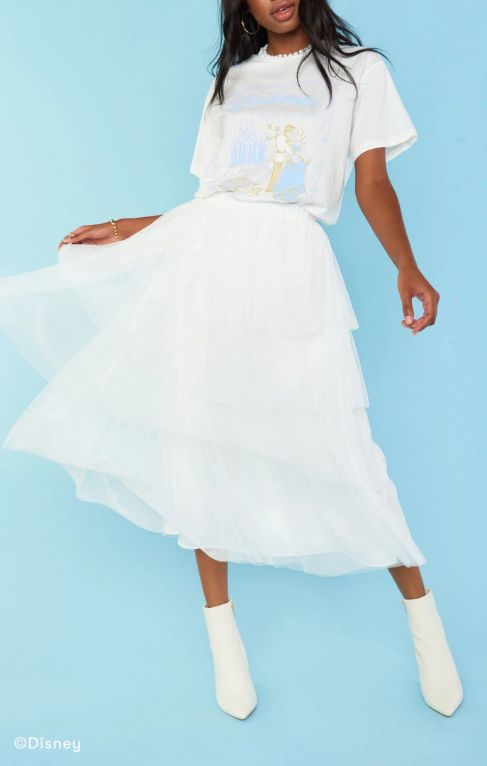 This new Disney Cinderella graphic tee is a relaxed fit with a scooped open neckline. We promise you’ll be wearing this tee happily ever after.