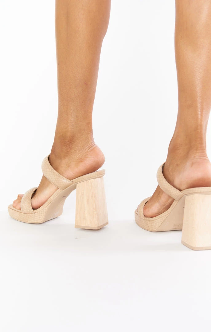 All about these textures. ATLAS features our favorite snake-embossed accents, contrasted with a woodgrain block heel for even more interest. The result is a cool juxtaposition of trending textures, inspired by nature.