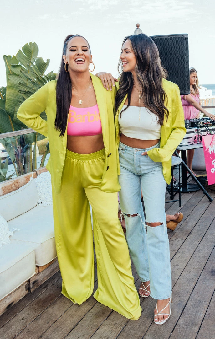 Cool girl boss babe in this vivid green blazer. Shining satin fabric, blousy fit and buttons elevate this. Wear layered over the matching Ansley crop top with denim or go for the full look with the Irwin Pants.