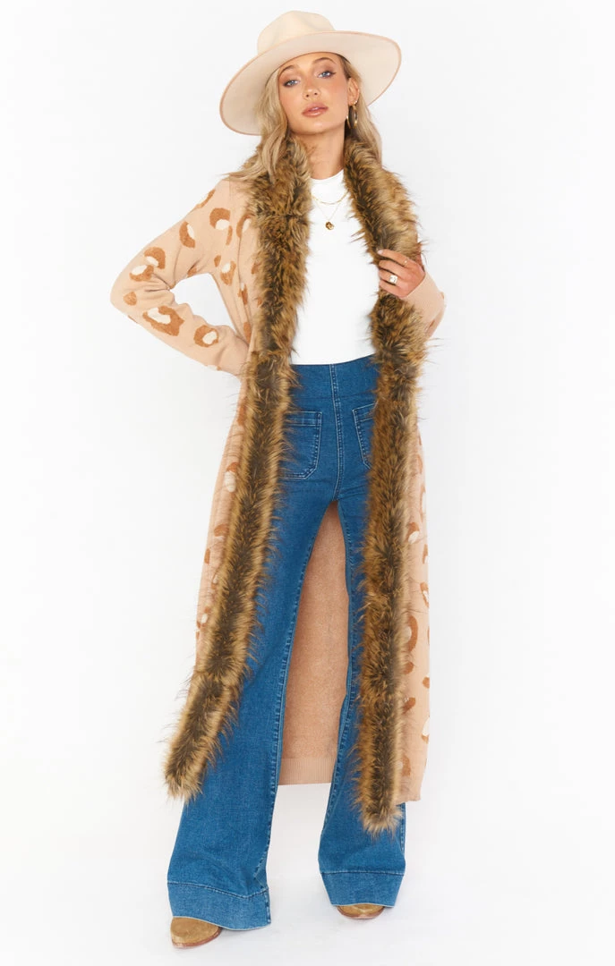 Show Me Your Mumu New Mu Langston Cardigan ~ Warm Leopard Knit Faux Fur