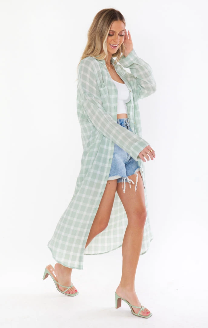 Show Me Your Mumu New Mu Leo Button Down Tunic ~ Green Plaid