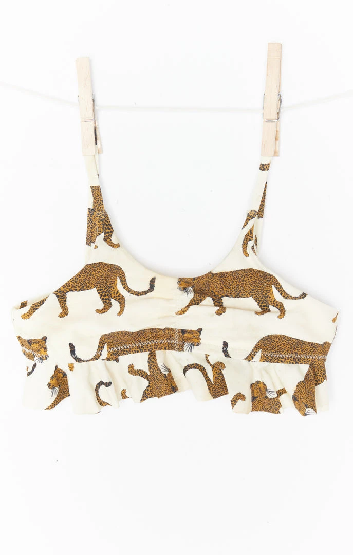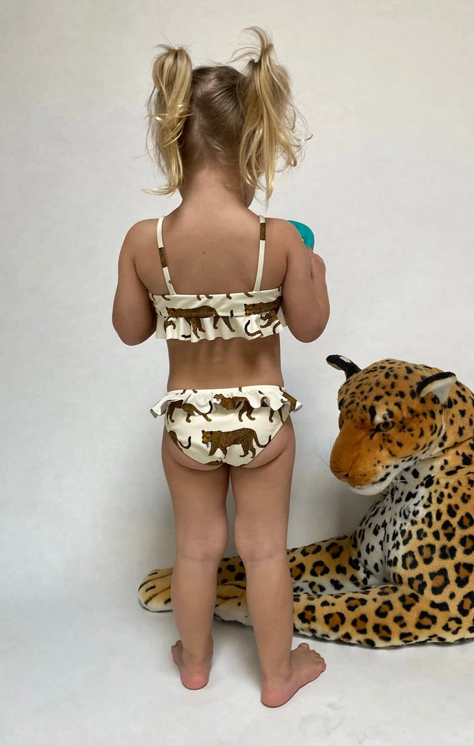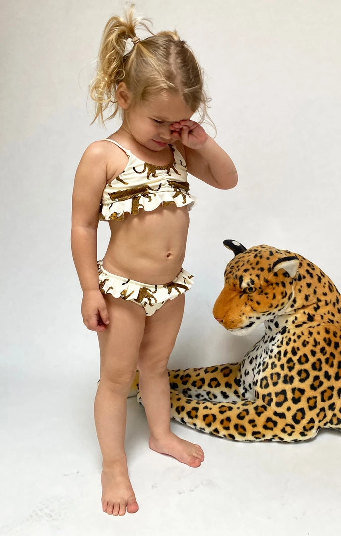 The cutest ruffled two piece for your little mini me! Match perfectly with your baby in this cheetah bikini
