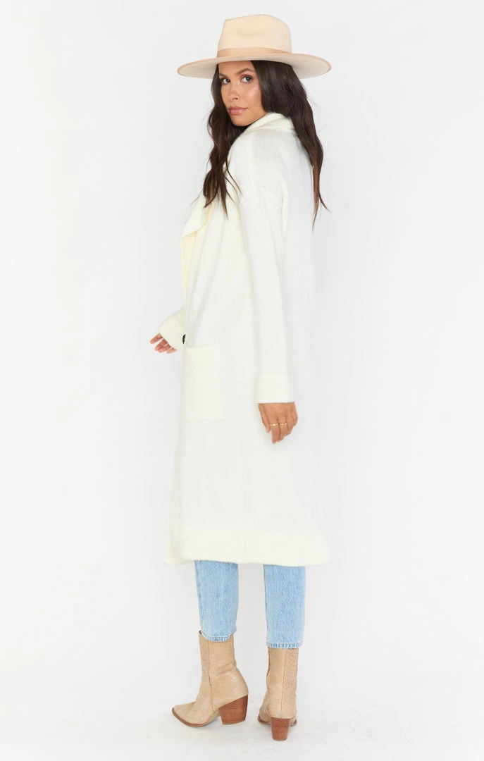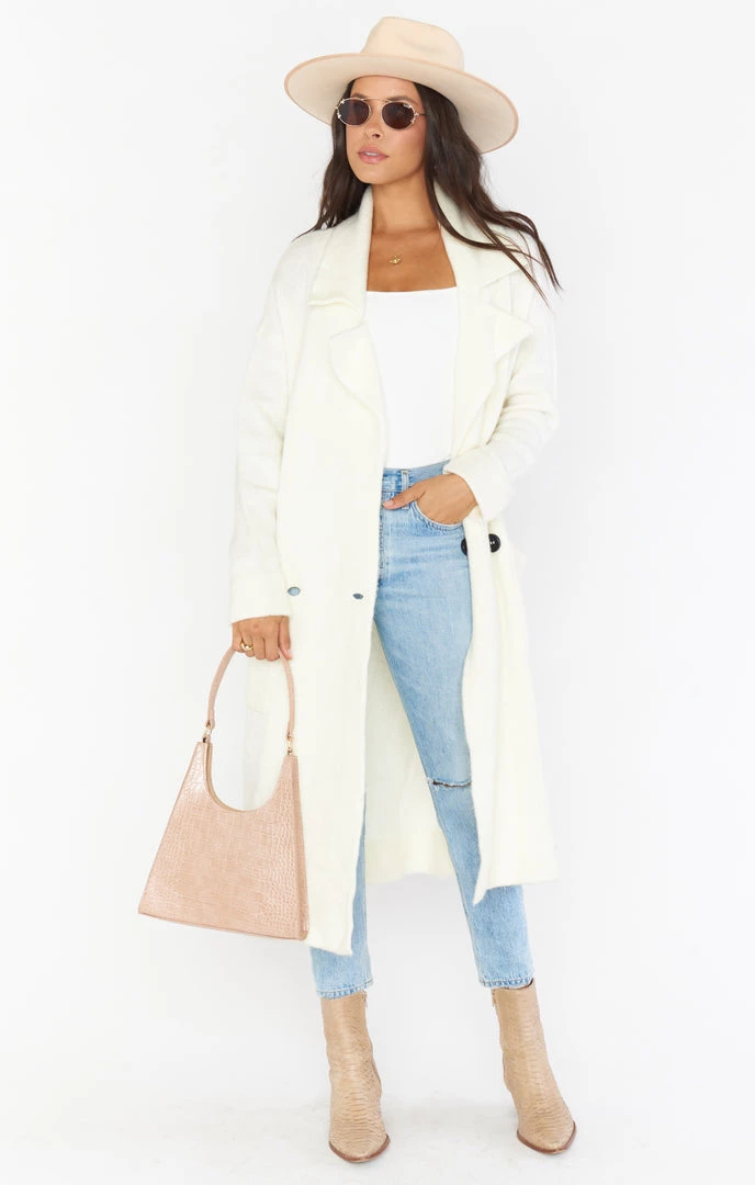 Hit the streets of Melrose in this new crisp and chic cream jacket. This jacket features a front button closure and two front pockets. Stay warm and stylin on your next shopping trip to Melrose with the Melrose Sweater Jacket!