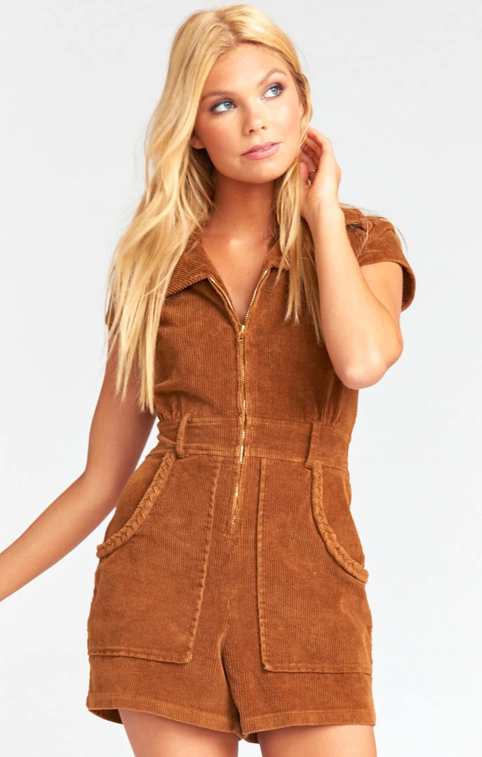 Show Me Your Mumu New Mu Outlaw Romper ~ Saddle Brown Corduroy
