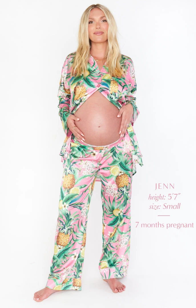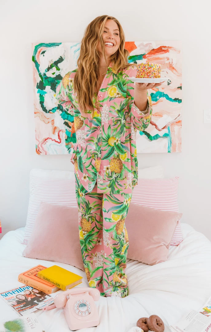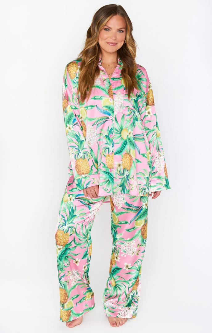Find your slice of paradise without leaving bed. This button down long sleeve and matching pants set elevate the pj game! Keep it cozy casual in the full set, or add the Hangout tank and your fave Mumu denim to bop around town!