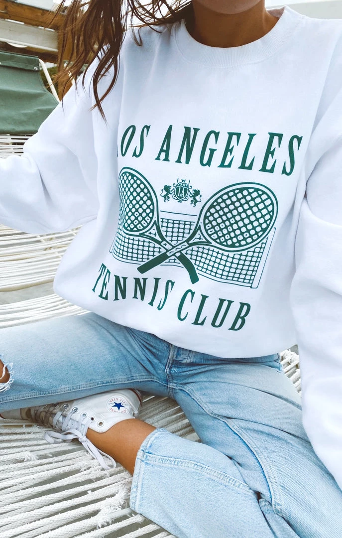 Join the club this summer! We created the perfect comfy white sweatshirt in our classic crewneck cut that you will want to want to wear over and over, not just on the court.