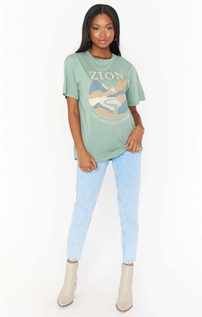 Explore the southwest in this vintage inspired Zion National Park tee. Pair this oversized tee with your fave MuMu blues and you’ll be ready for adventure!