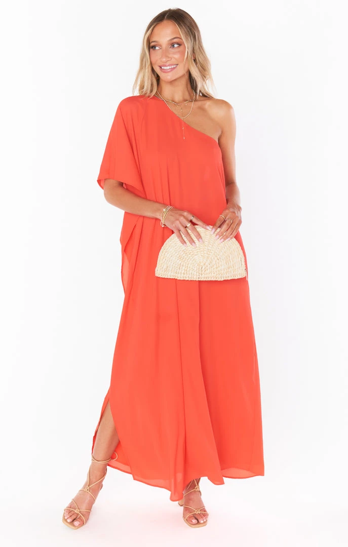 The Tropez Maxi is the red one shoulder dress that every MUMU girl needs in her closet. The Tropez shows just the right amount of skin with a one shoulder flowy silhouette, and her lightweight and breezy fabric makes it perfect to wear both as a beach cover up or an elevated event.