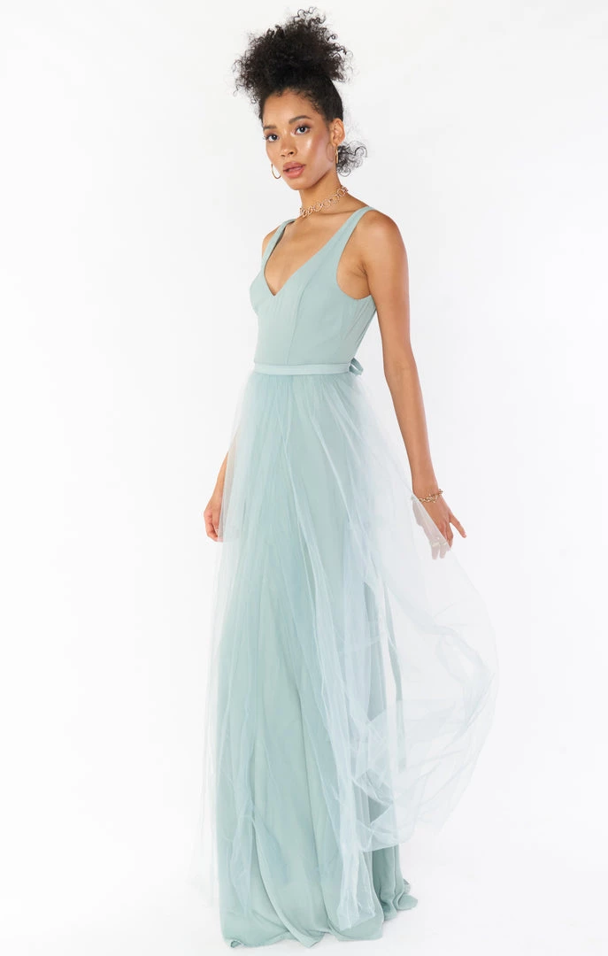 SKU: show-me-your-mumu-4485342101547 Categories: Bridesmaids, Bridesmaids Dresses, Bridesmaids Dresses, Clothes, Dresses, Dresses + Rompers, New Mu Tags: Bridesmaid, Bucket:Silver Sage, Child:Silver Sage Tulle, Ss-keep, Style:a line, Type:bottoms, YCRF_os, YGroup_olivia-overskirt