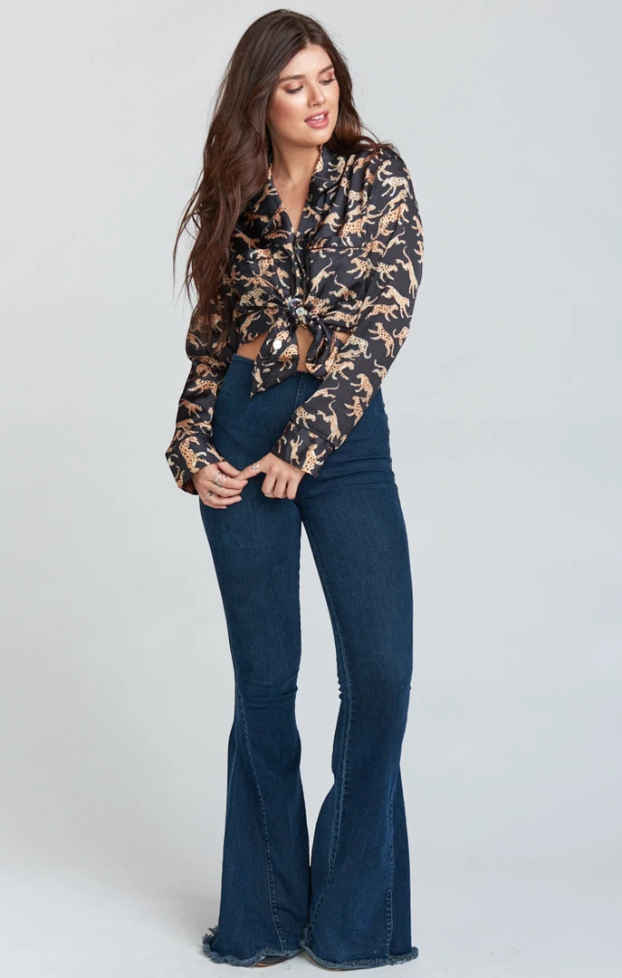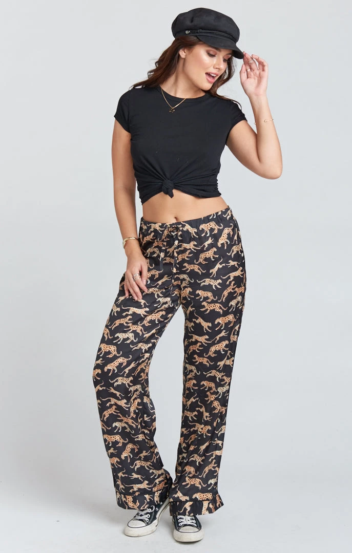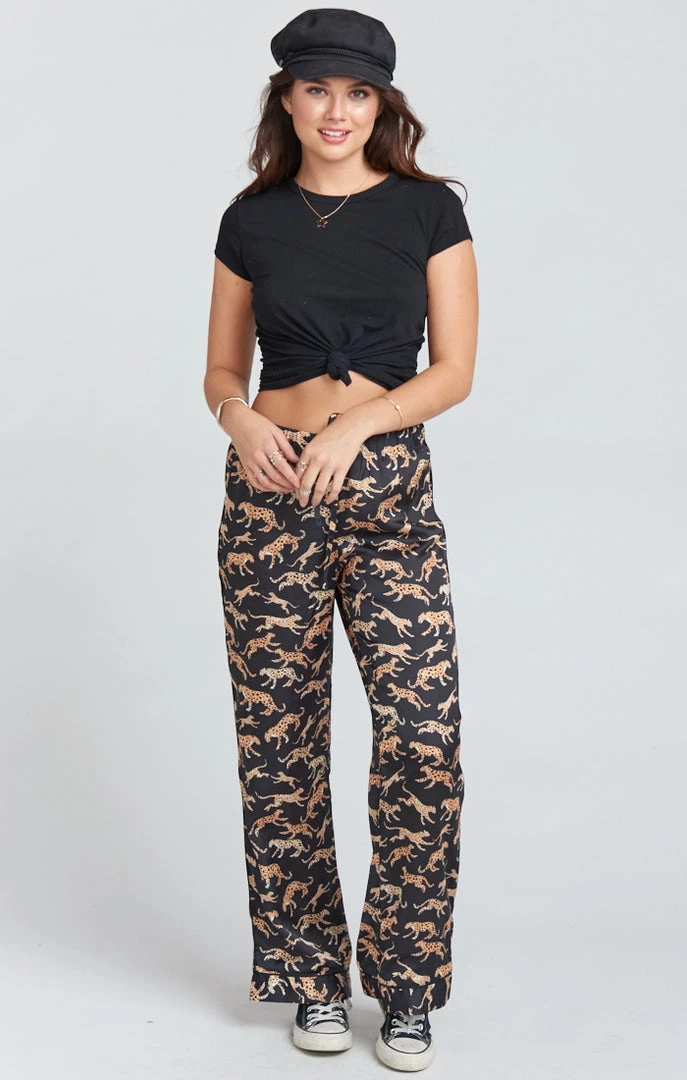 Here at Mu, we are big fans of a PJ set. This pajama set features a top with a v-cut neck and a button down closure, bottoms with an elastic waist, along with a matching eye mask. Wear this set all together for the perfect pajama party outfit, or pair the top with denim for a day or night look. Talk about versatile!