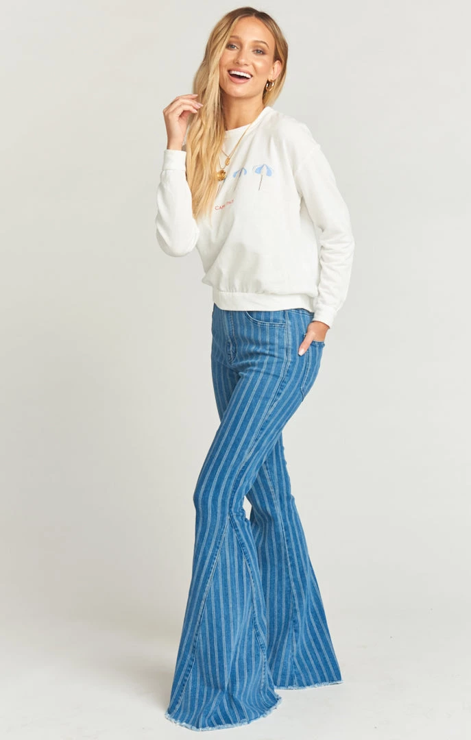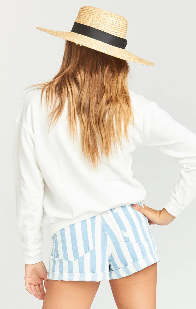 Soft and cozy pullover sweater! This sweater features a scoop neck and a “Capri Italy” graphic. Pair this pullover with any of your fave MuMU blues and you’ll have the perfect comfy spring time look!