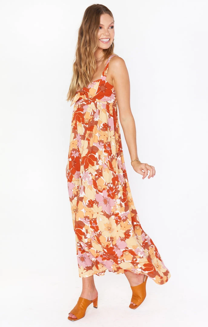 Dress her up or dress her down in one of our more versatile floral midi dresses to date. Add gold jewels and heels for the last of your weddings, or toss on sandals for farmers market chic. Adjustable straps, empire waist and smocked make this as flattering as it is flirty.