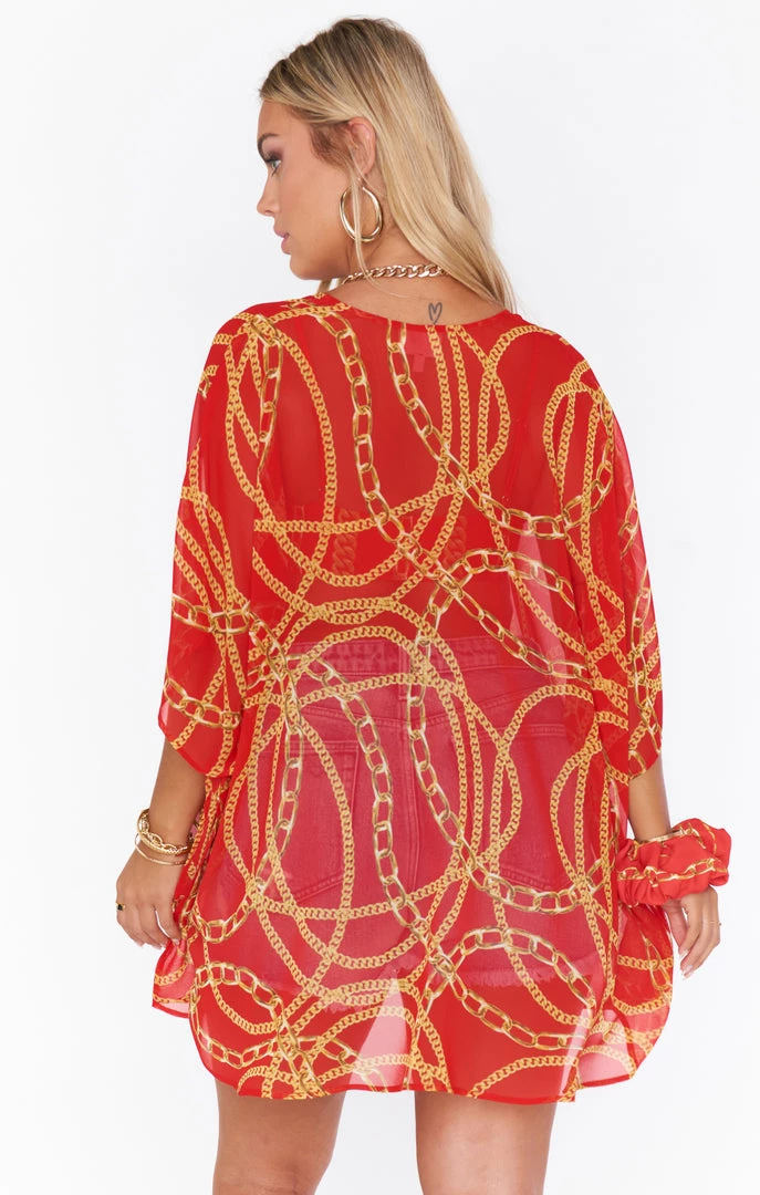 Peta is a Mu classic! This style has been around since the beginning and is a crowd favorite. This red chain print tunic can be thrown over a bikini, but can also be worn with little shorts, leggings, or jeans. Oversized and unbelievably comfy, but so flattering and glamorous all at the same time.