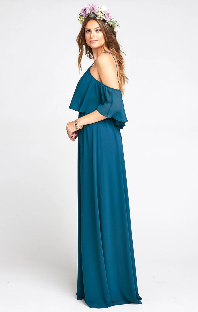 Show Me Your Mumu Rebecca Ruffle Maxi Dress ~ Deep Jade Chiffon Bridesmaids Dresses
