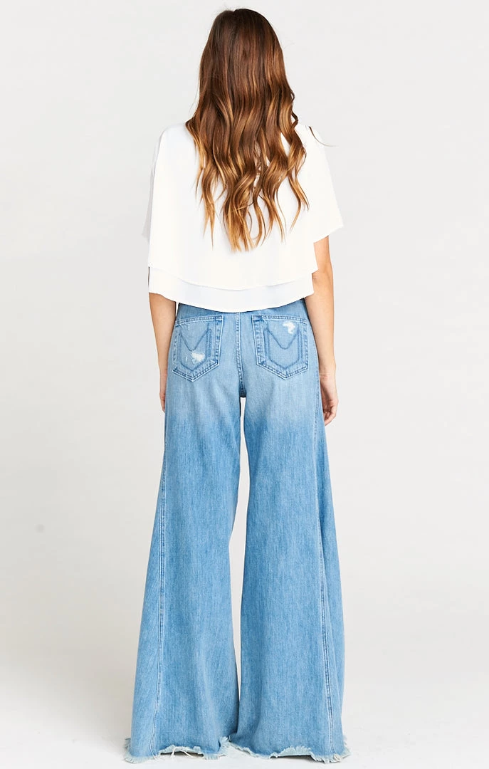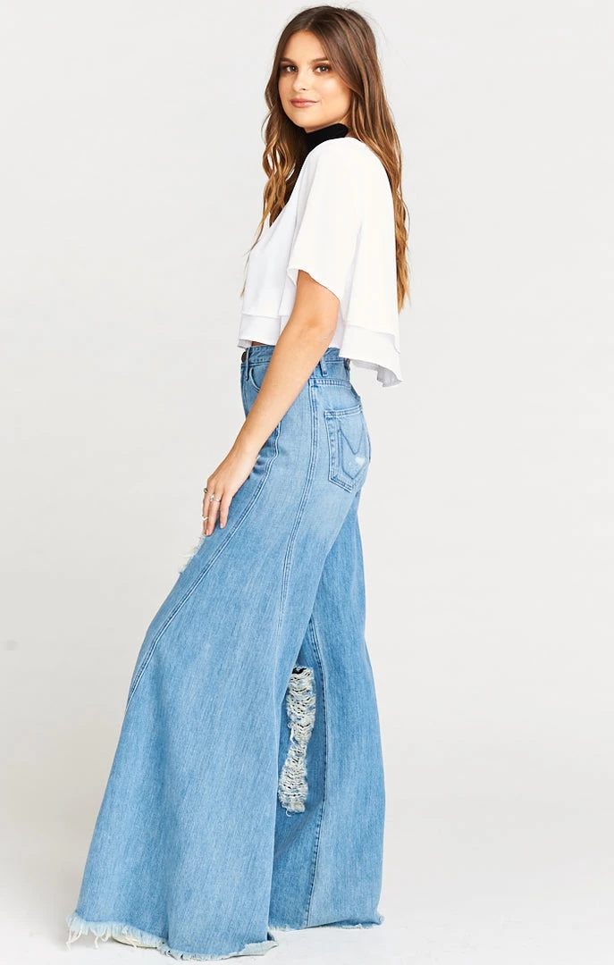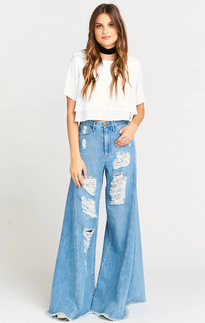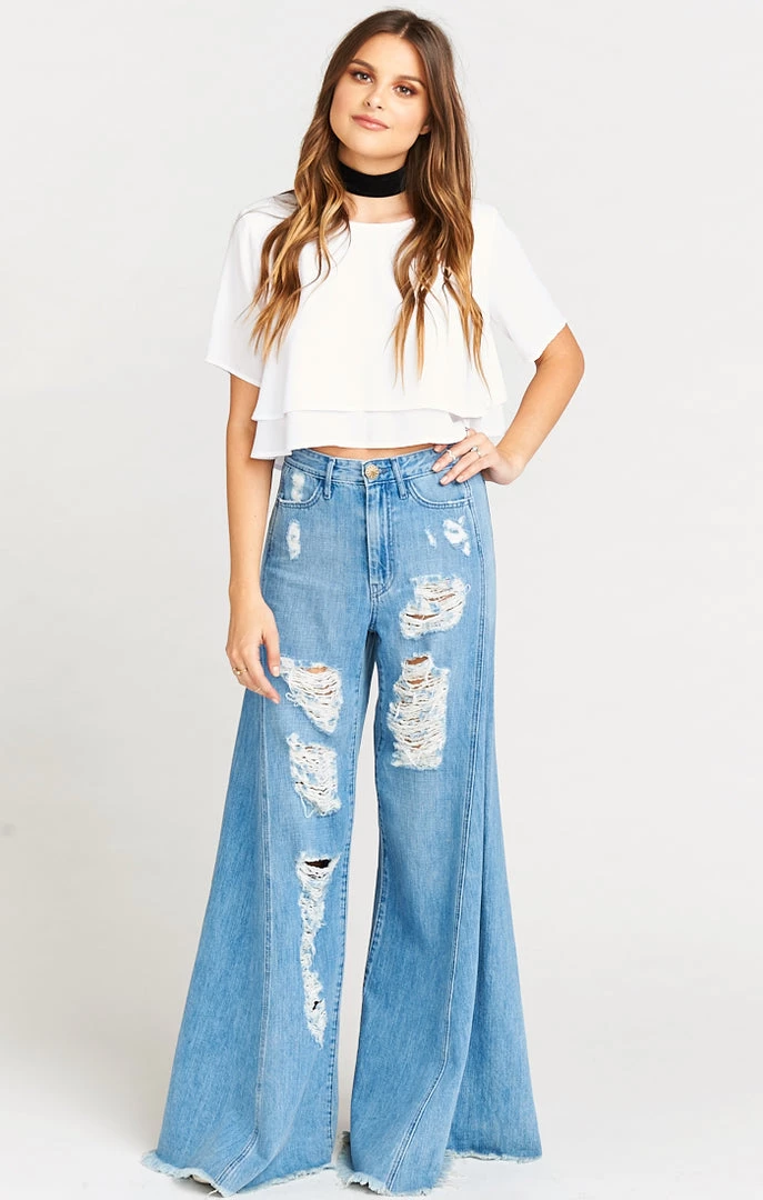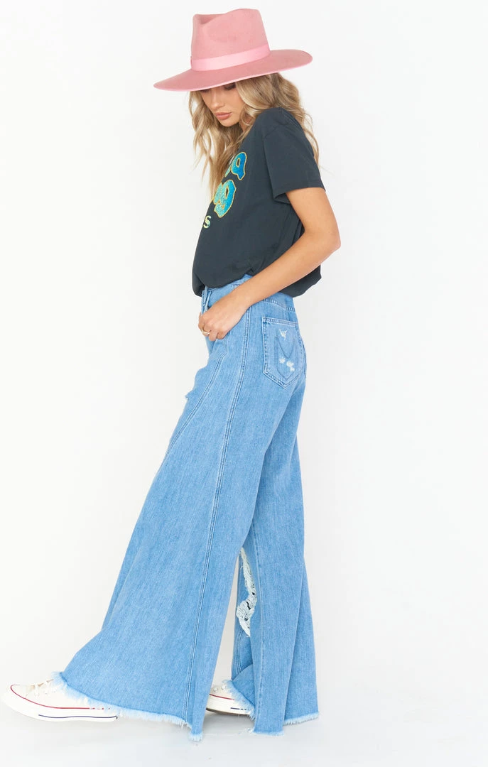 Oh hey bay, you’re looking super fly. High-waisted and fitted up top flare out to the raddest retro super flare that you ever did see! Pair with a crop tank or even just a crochet bikini top to peace out to your fave festival.