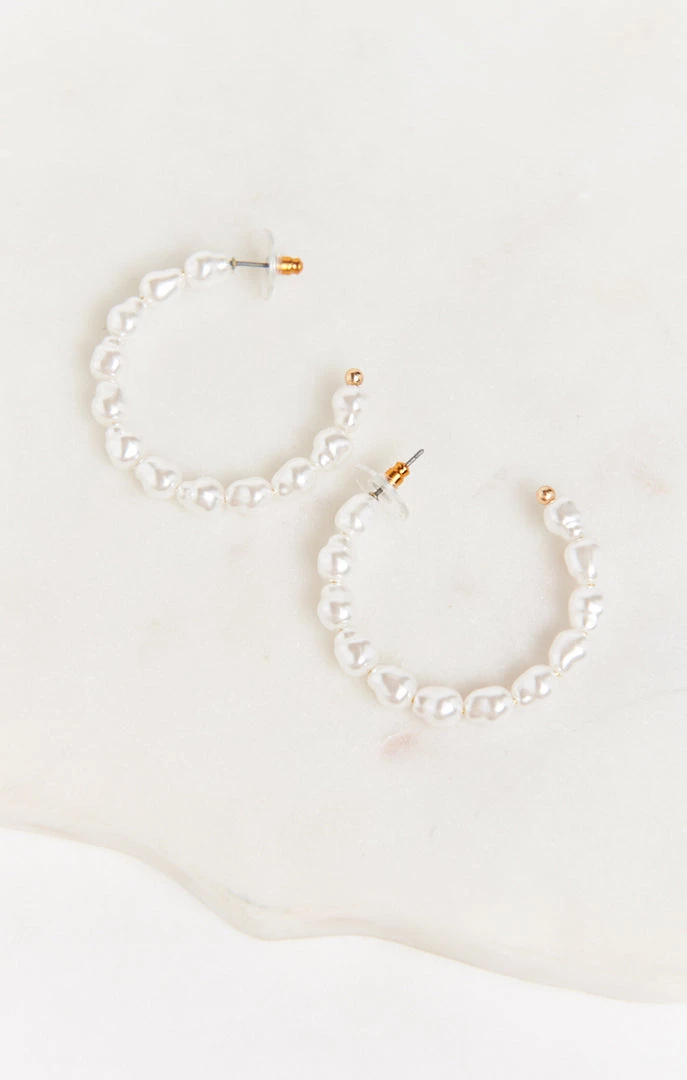 Show Me Your Mumu Sara Pearl Hoops ~ White