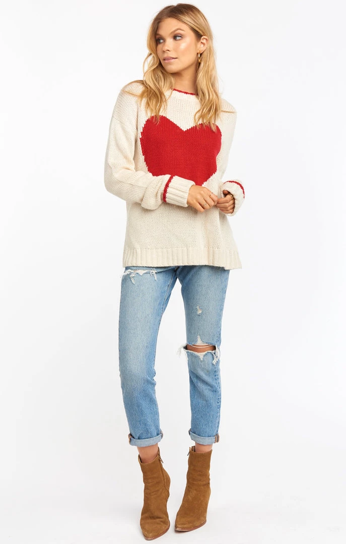 Spread the love in our Sweetheart Sweater. This sweater has a cozy feel with a heart knitted right in. Spreading love has never looked or felt better than when in the Sweetheart Sweater!