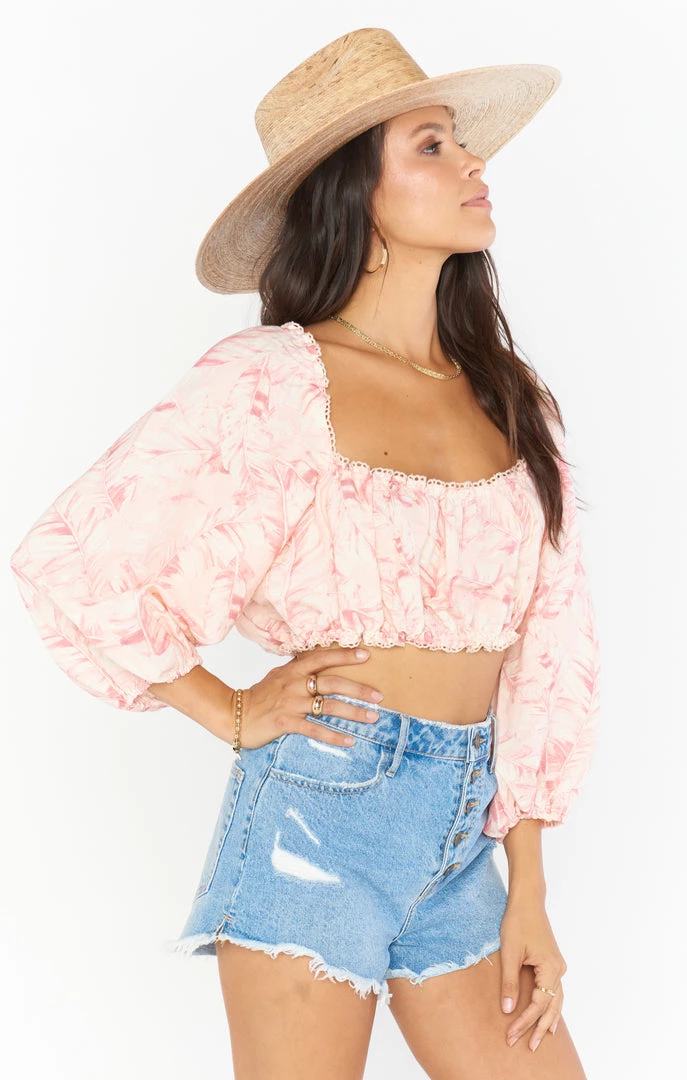 Show Me Your Mumu Tops Claudia Crop Top ~ Pink Majestic Palm