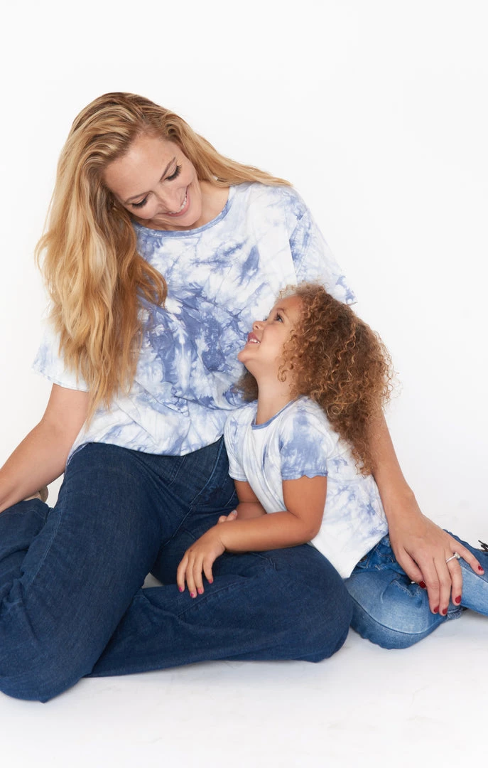 Show your hippie side in this relaxed and lightweight Cooper Tee. Its scoop neck and smokey blue tie dye make this tee easy to throw on with highwaisted shorts or your fave Berkeley Bells!