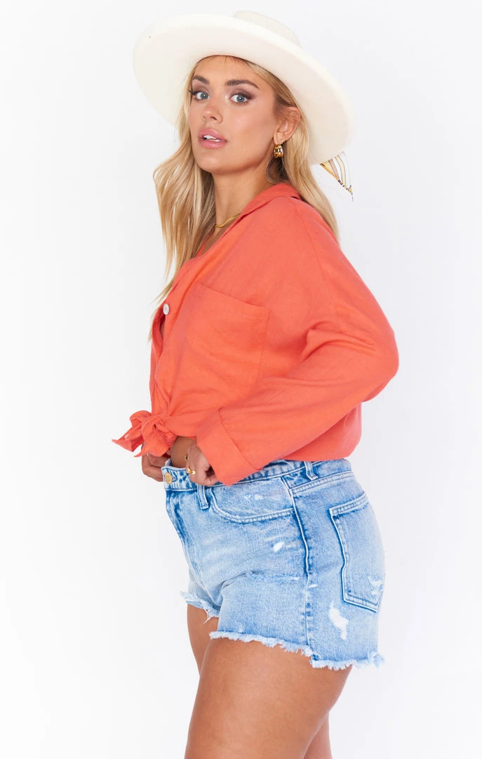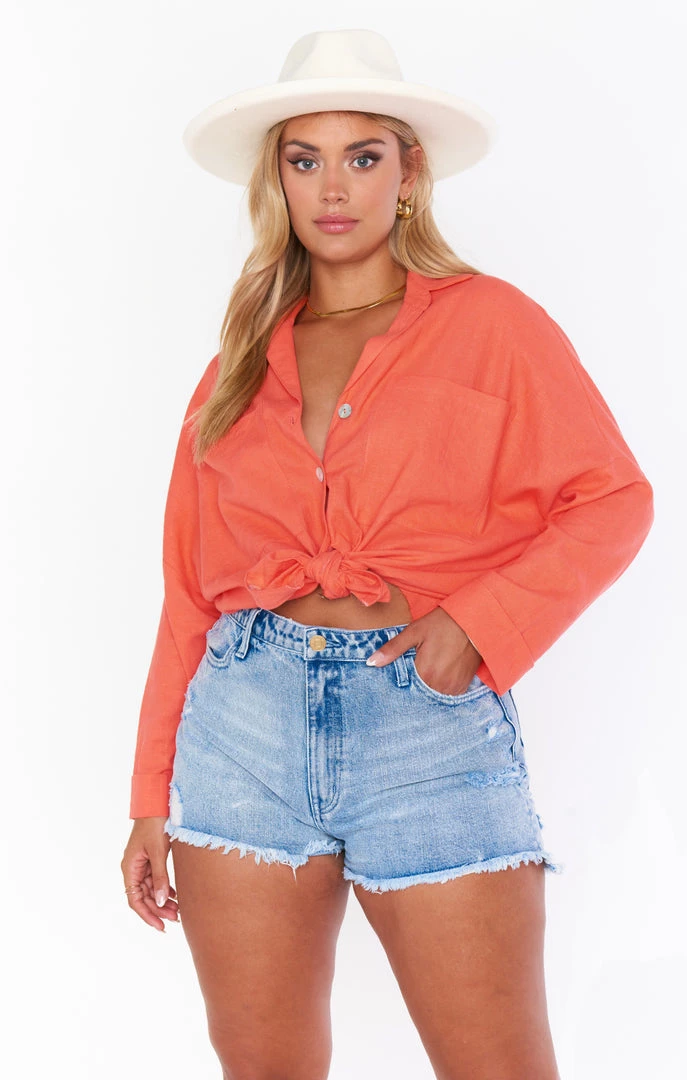 Show Me Your Mumu Tops Johns Button Down Shirt ~ Coral Linen