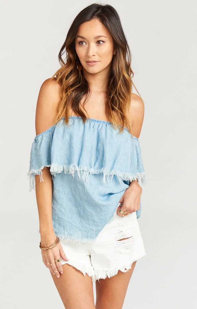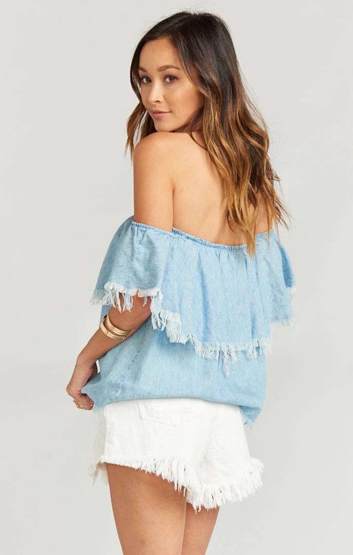 Show Me Your Mumu Tops Ruffle Top ~ Light Chambray