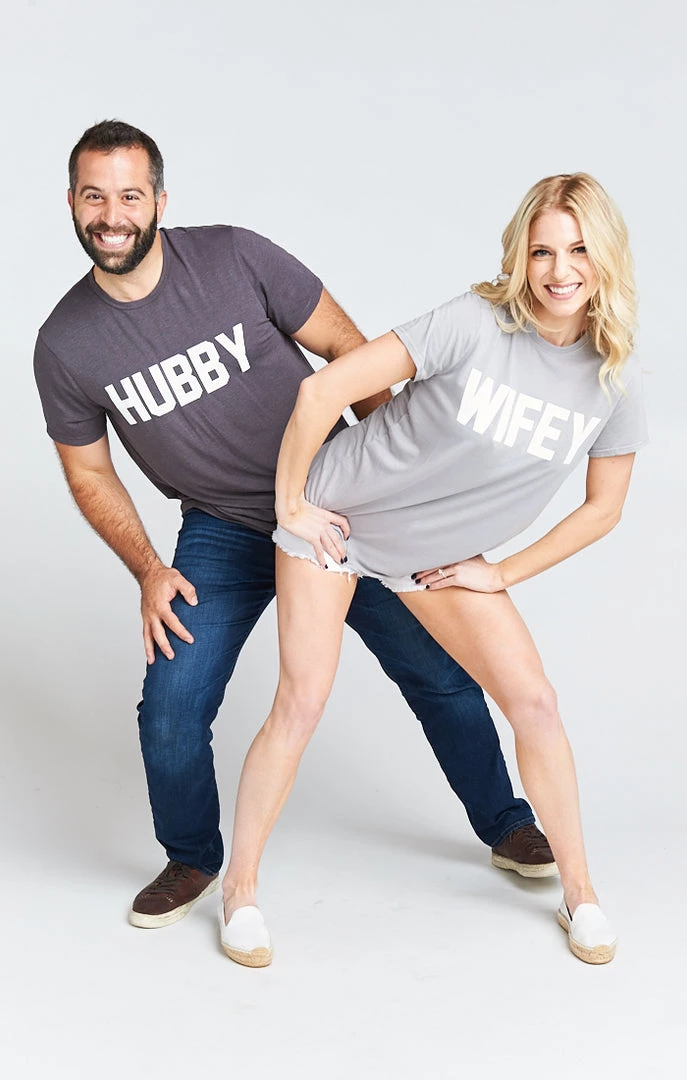 Some say it’s bad luck to get your partner’s name tattooed on you body, but they didn’t say anything about a graphic tee! Oh hubba hubba your hubby hubby is gonna look cute!!! (sorry not cute, super handsome and strong!)