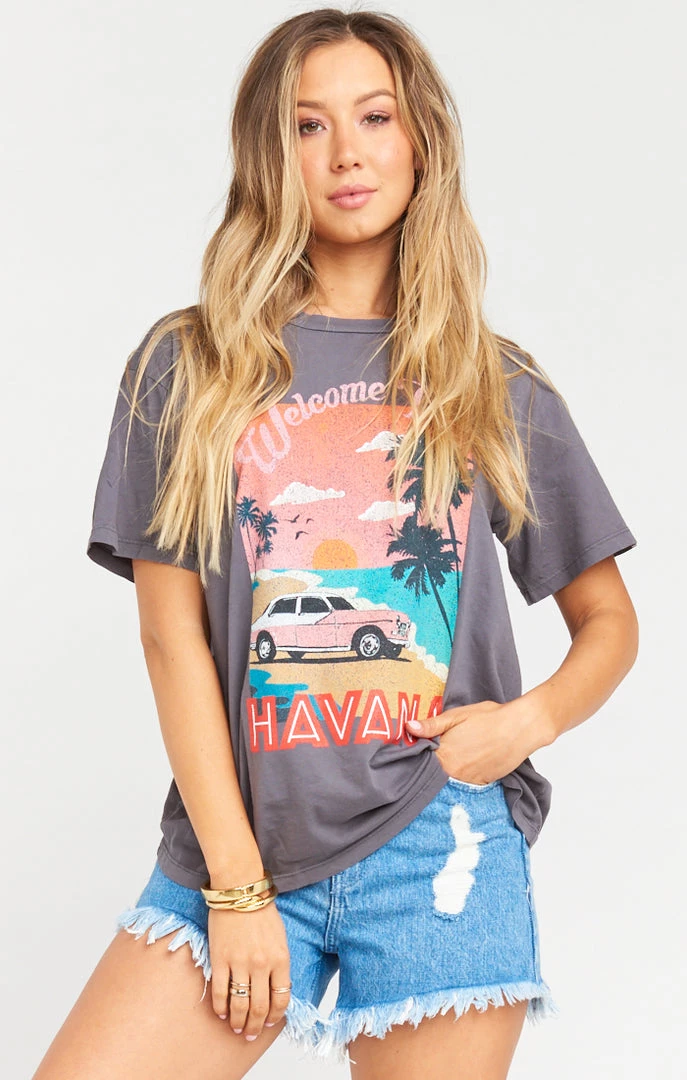 You’ll be ready for Havana in this cute graphic tee! This tee features a “Welcome to Havana” graphic and an oversized fit.