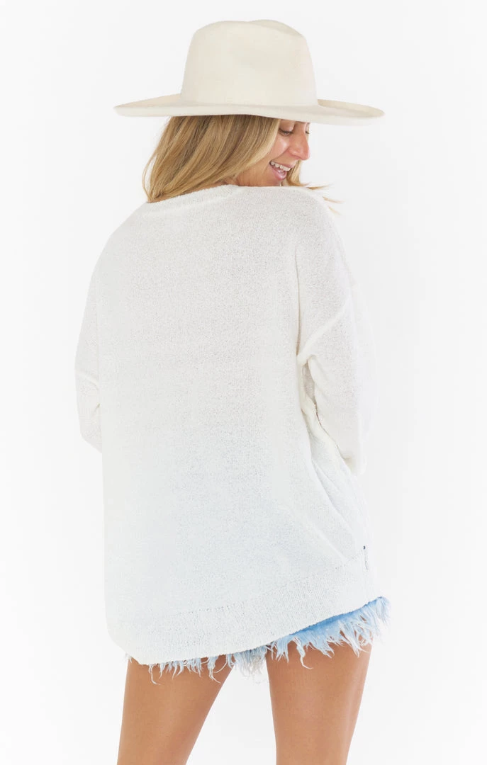 This sweater is a classic and will complete any look. Pair this sweater with your fave MuMu blues and sneakers or toss over your swim at the end of a day on the lake.