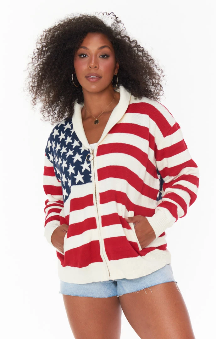 SKU: show-me-your-mumu-6835380617259 Categories: Cardigans, Clothes, Maternity, New Mu, Printed, Sweaters, Sweaters + Cozy Tags: Patriotic, Sleeve:long sleeve, Type:maternity friendly, Type:sweaters, YGroup_zippy-cardigan