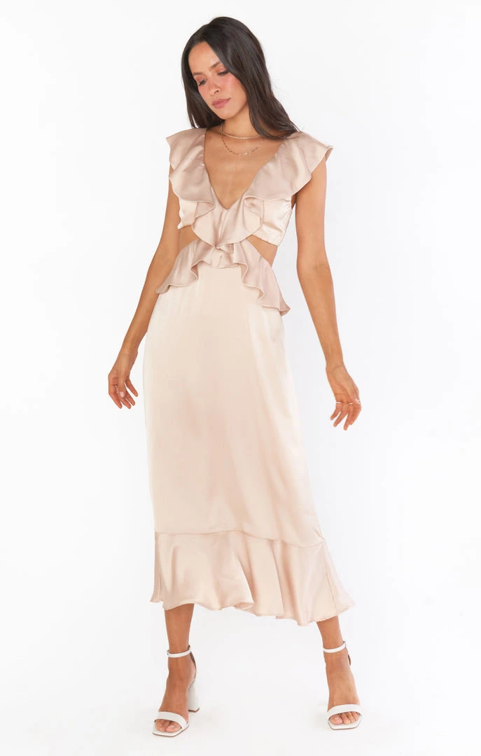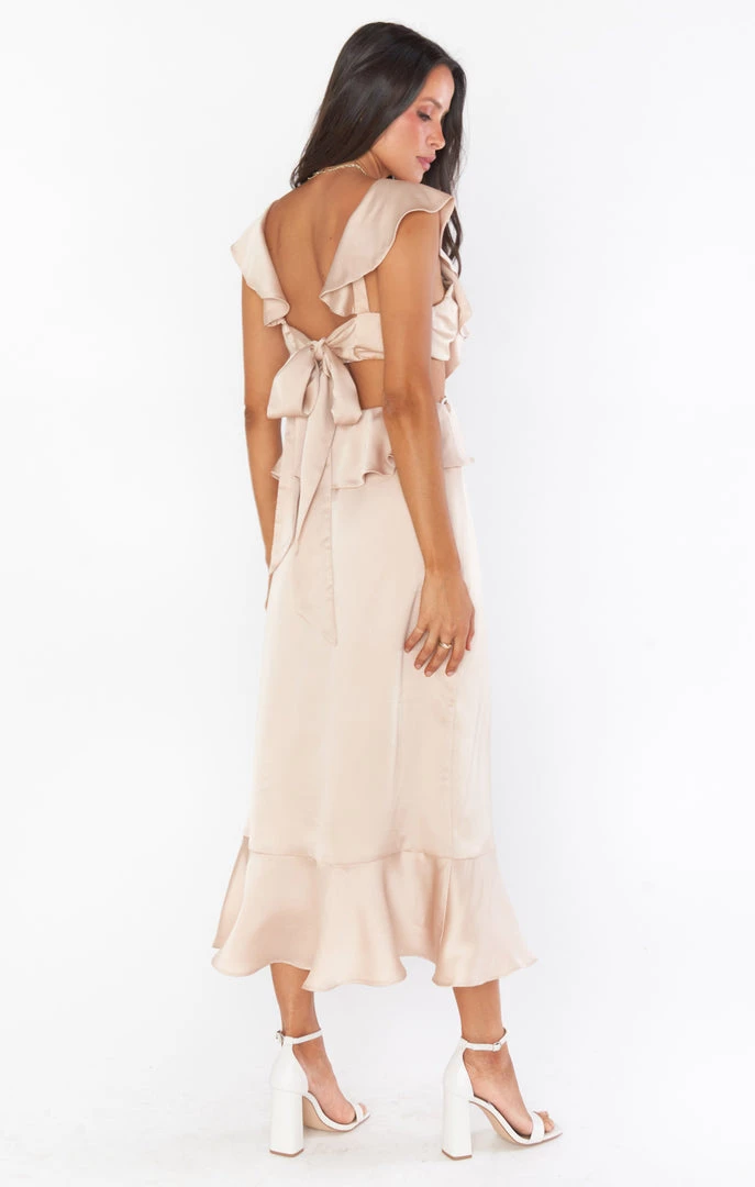 Show Me Your Mumu Zoey Midi Dress ~ Champagne Luxe Satin