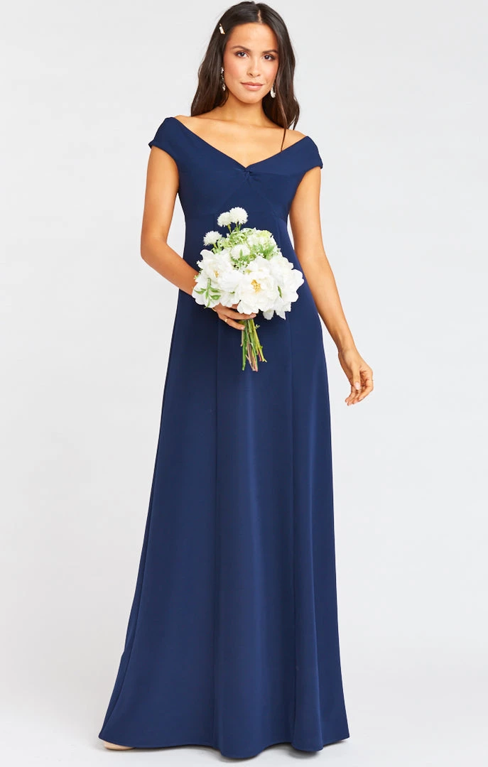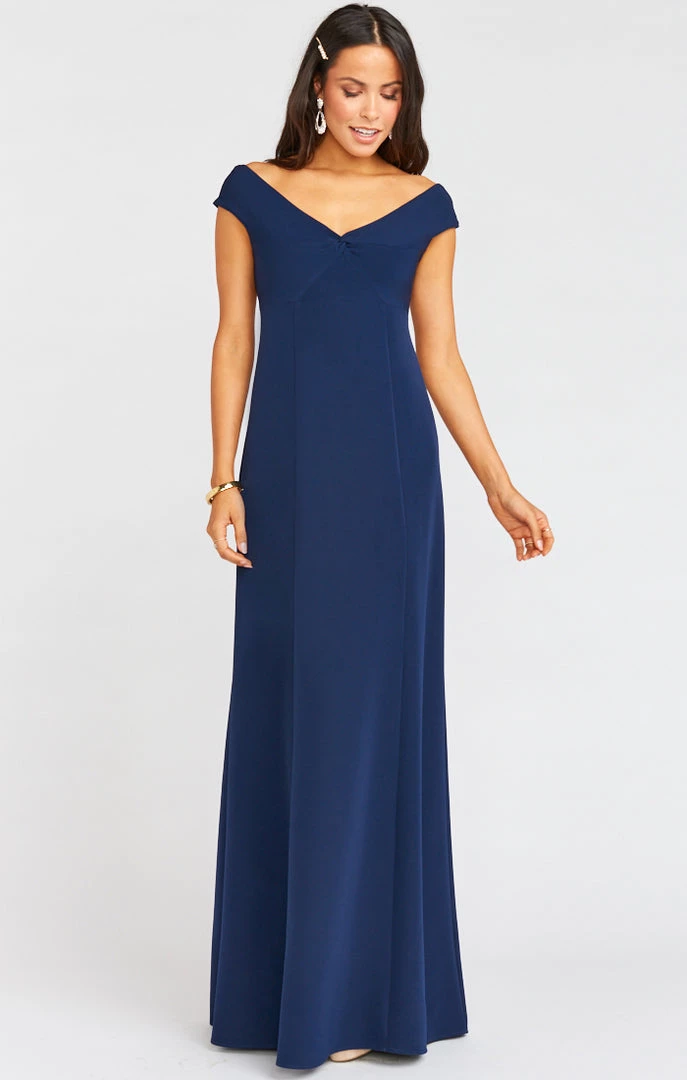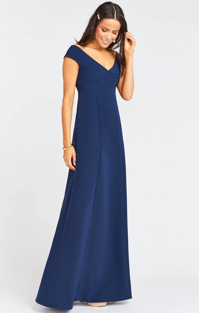 SKU: show-me-your-mumu-1845313175595 Categories: Bridesmaids, Bridesmaids Dresses, Clothes, Dresses, Dresses + Rompers Tags: Bucket:Rich Navy, Child:Rich Navy Stretch Crepe, In_sale_section, Neckline:off shoulder, Neckline:v neck, Retired_bridesmaids, Style:mermaid, YGroup_zurich-knot-gown